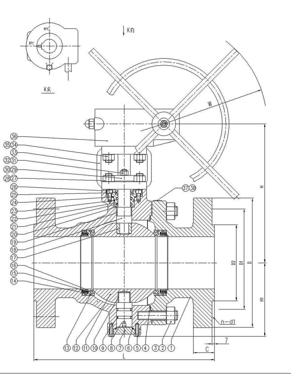 三、固定蝸輪球閥規(guī)格主要尺寸: