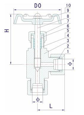 3. 結(jié)構(gòu)特征: 錐面或球面密封,直角式