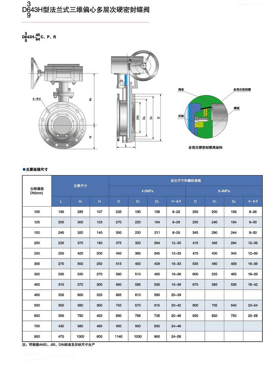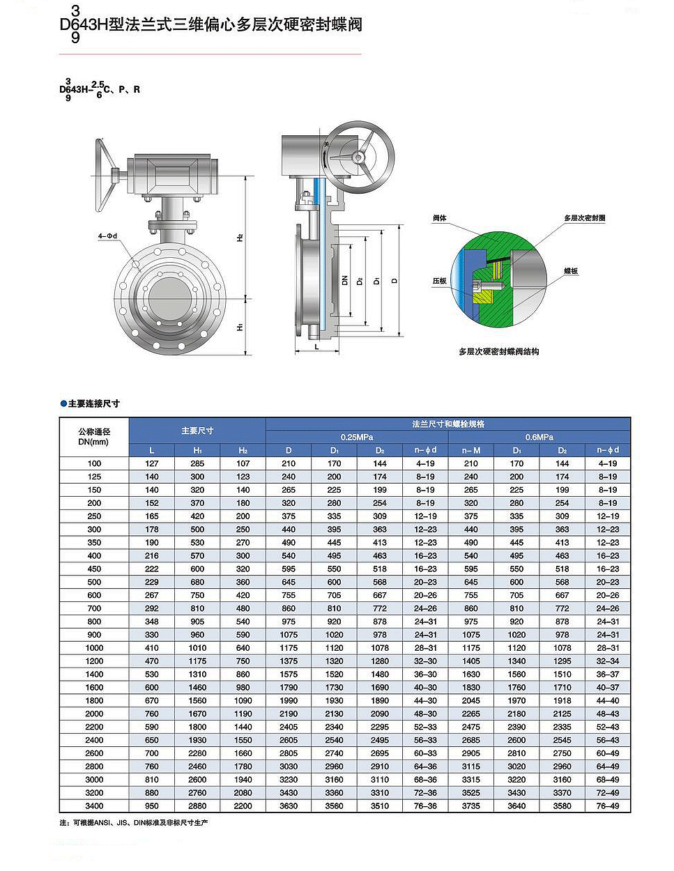 D343H-16C/P/R法蘭三偏心多層次硬密封蝶閥